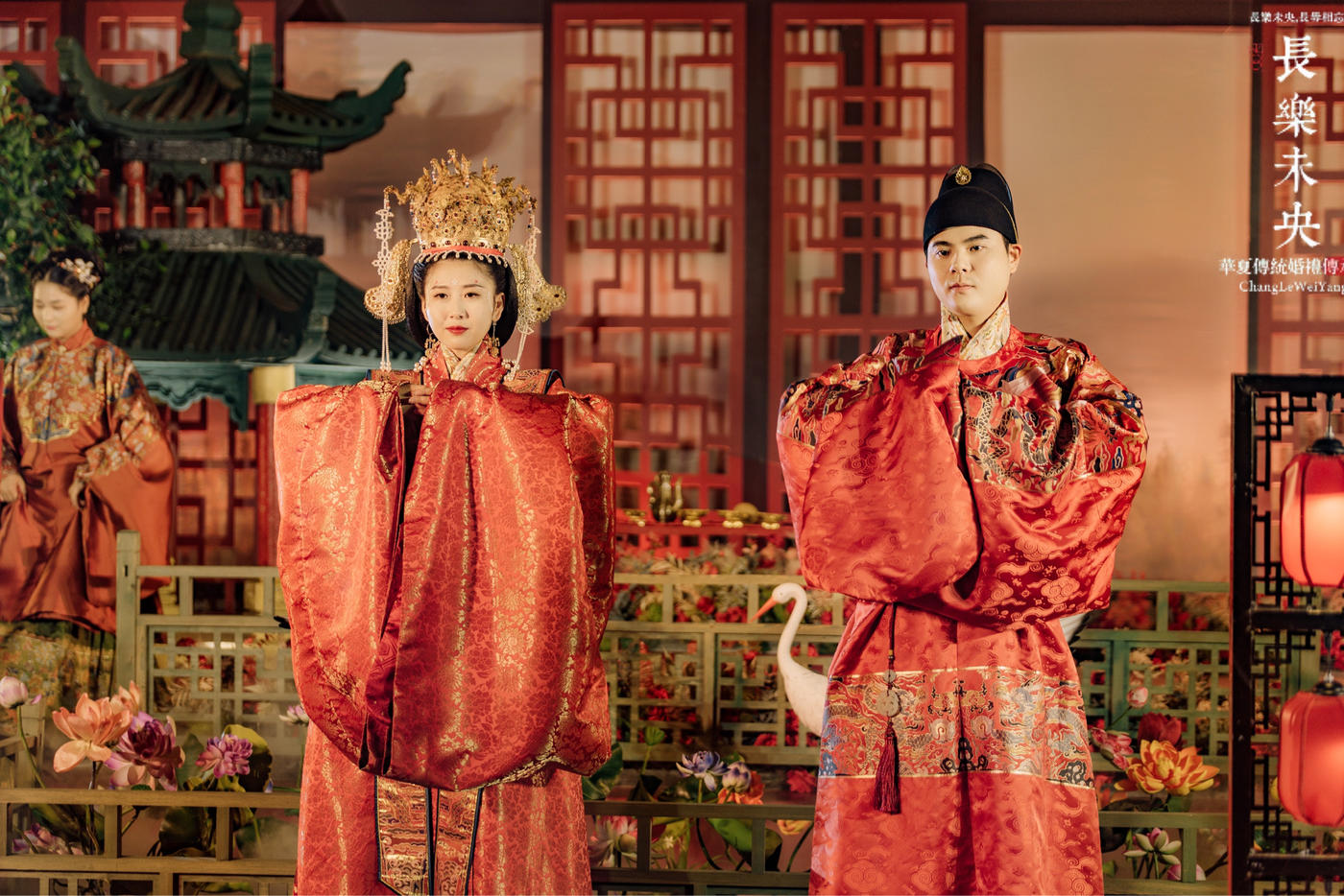 一袭红衣,金冠霞帔, 不仅是对古代礼仪的尊崇 更是对未来美好生活的祈愿 在这神圣而庄严的时刻 表达对家庭、社会以及自然万物的敬畏之情。 长乐未央河南周口婚礼花絮预告[更多…]