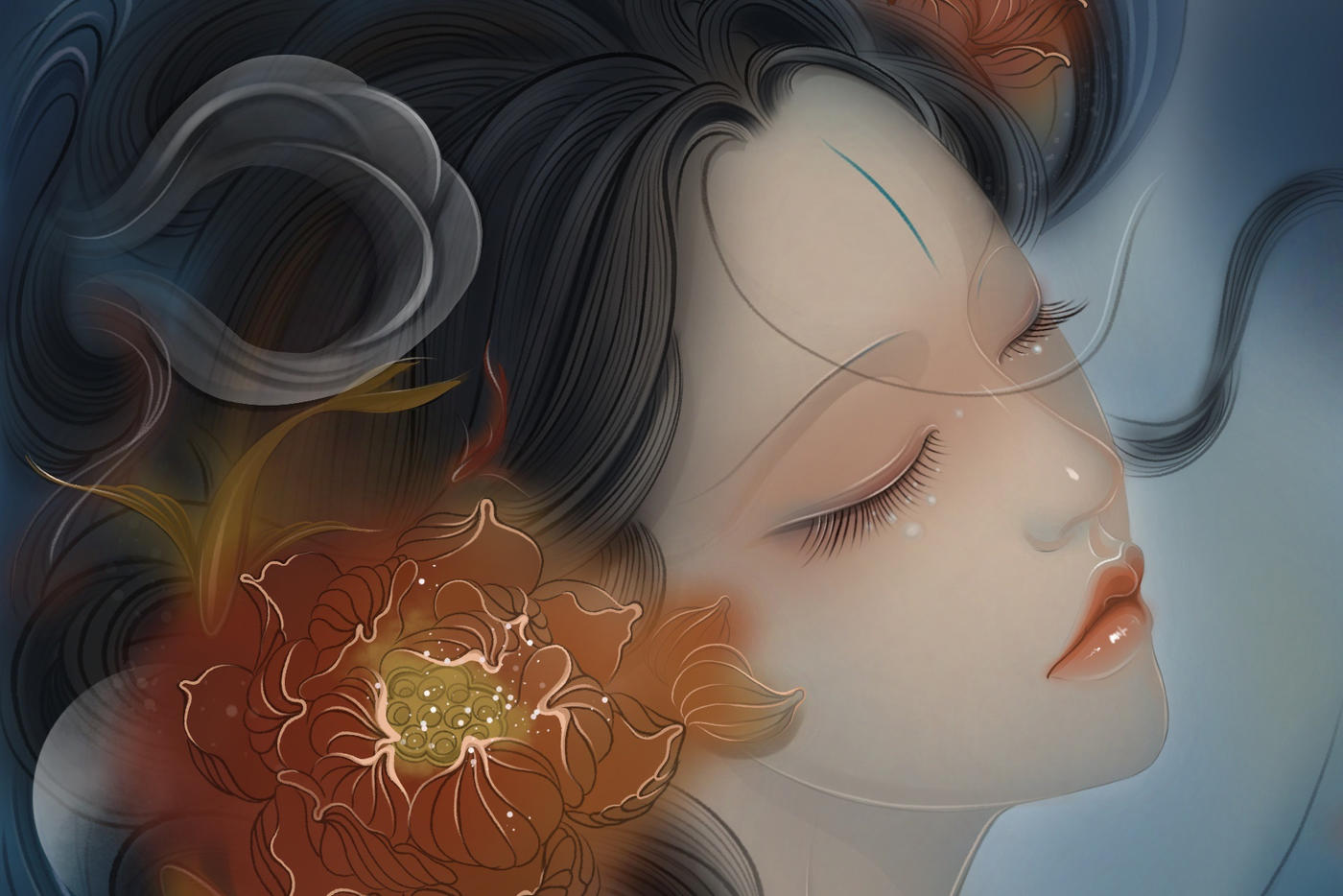 若隐若现罥烟眉,似嗔似喜含情目,娇俏玲珑挺秀鼻,不点自红樱桃唇,肤若凝脂,颊似粉霞,不盈一握的柳腰娉婷袅娜地倚在水亭雕花木栏旁。水光潋滟之中,倾国倾城之貌隐约幻现。[更多…]