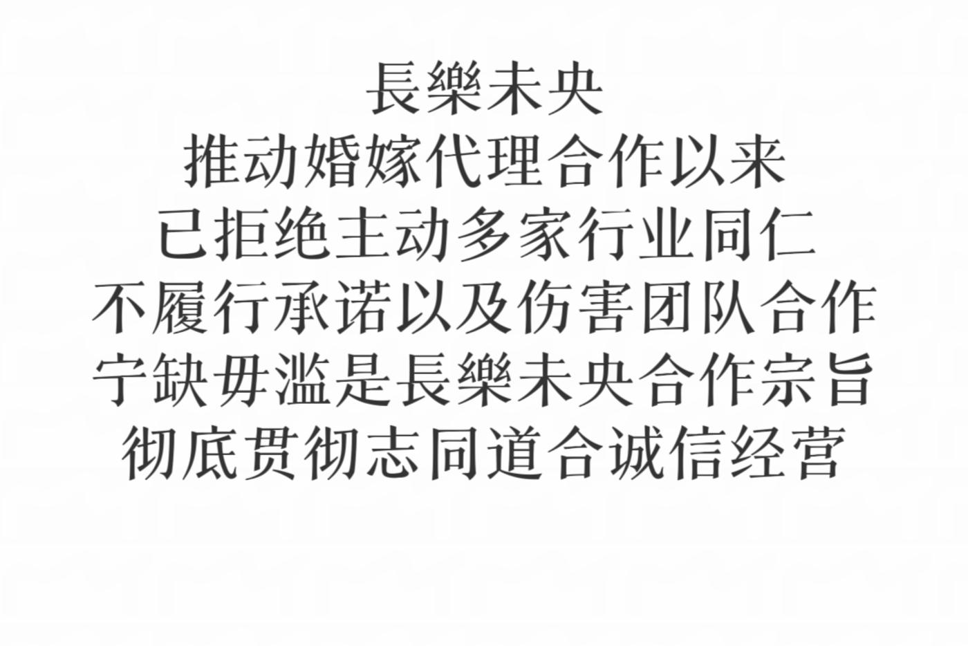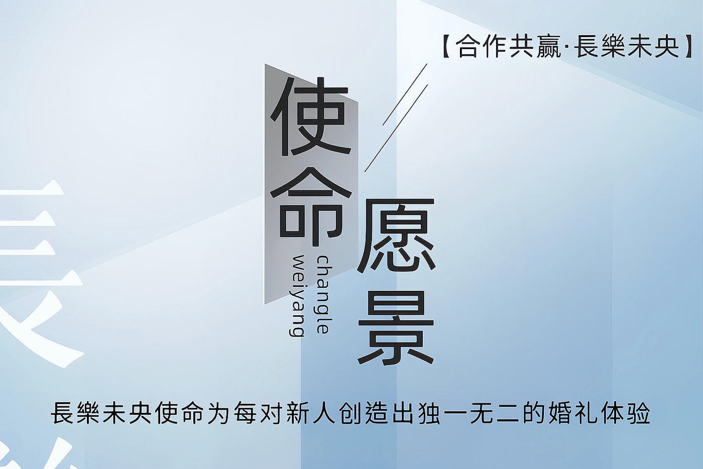 合作共赢·長樂未央 長樂未央使命为每对新人创造出独一无二的婚礼体验 为每一场婚礼注入责任与创意 将专业精神融入工作环节追求卓越品质 携手成长 共赢未来鼓励团队内外协作与分享 相信团结合作的力量创造奇迹 诚信、专业、创新、关怀 以诚信为根基与每一位加盟商与代理商 合作伙伴建立信任与契合 倡导开放包容的沟通方式与合作伙伴共同分享心得 加入我们获得更多的支持与资源 共同探索婚嫁行业的无限可能 为爱绽放 为梦想前行 成为婚嫁行业引领者 一起创造属于我们的長樂未央 愿景 使命[更多…]
