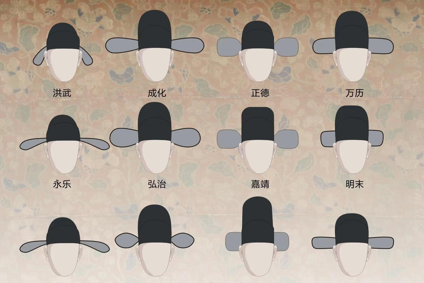 明朝乌纱帽 明朝的乌纱帽是官员的重要标志之一 体现了官员的身份和地位 1. 材质与形状 - 乌纱帽通常由黑色的纱布制成,呈方形或圆形,顶部略高,两侧有两片宽大的翼片,称为“翅”。帽子的前端有一个小孔,用于插入“簪”,固定在头上。 2. 颜色与等级 - 乌纱帽的颜色和装饰物可以区分官员的品级。一般来说,高级官员的乌纱帽上会有更多的装饰,如金饰、玉饰等。 - 一品至五品官员的乌纱帽上通常有金色或银色的装饰,而六品以下的官员则较为简单。 3. 佩戴方式 - 乌纱帽戴在头顶,两侧的翅自然垂下,显得庄重而威严。官员在正式场合、上朝或处理公务时必须佩戴乌纱帽。 4. 文化意义 - 乌纱帽不仅是官员的服饰,更是权力和地位的象征。在文学作品中,乌纱帽常常被用来形容官员的权威和尊严。例如,“脱去乌纱帽”意味着辞官归隐,放弃权力。 5. 演变与发展 - 明朝乌纱帽的设计在不同的时期有所变化。早期的乌纱帽较为简单,后来逐渐增加了各种装饰。到了明朝晚期,乌纱帽的样式已经相当成熟,成为后世官员服饰的重要参考。 明朝皇帝年号及其背景 洪武 (1368-1398) - 朱元璋,即明太祖,是明朝的开国皇帝。洪武年间,朱元璋实行了一系列巩固政权的措施,如推行土地改革、整顿军队、加强中央集权等,为明朝的稳定和发展奠定了基础。 成化 (1465-1487) - 朱见深,即明宪宗。成化年间,明朝社会经济较为繁荣,文化也得到了发展。然而,这一时期也出现了宦官专权的现象,影响了政治清明。 正德 (1506-1521) - 朱厚照,即明武宗。正德年间,明朝的内外政策摇摆不定,军事上多次对外用兵,内部则出现了严重的政治腐败。 万历 (1573-1620) - 朱翊钧,即明神宗。万历初年,张居正推行了一系列改革,使明朝达到了鼎盛时期。然而,后期由于皇帝怠政,朝廷逐渐走向衰落。 永乐 (1403-1424) - 朱棣,即明成祖。永乐年间,明朝国力强盛,对外积极开展外交活动,如郑和下西洋等。同时,永乐大典的编纂也是这一时期的标志性事件。 弘治 (1488-1505) - 朱祐樘,即明孝宗。弘治年间,明朝政治相对清明,经济繁荣,社会安定,被誉为“弘治中兴”。 嘉靖 (1522-1566) - 朱厚熜,即明世宗。嘉靖年间,明朝面临北方蒙古的威胁和东南沿海的倭寇侵扰。尽管有严嵩等奸臣当道,但也有徐阶、高拱等贤臣辅佐。 明末 (1620-1644) - 指的是从明神宗去世后到崇祯帝自杀,明朝灭亡的这段时间。这一时期,明朝内忧外患不断,最终被李自成领导的农民起义军推翻。 [更多…]