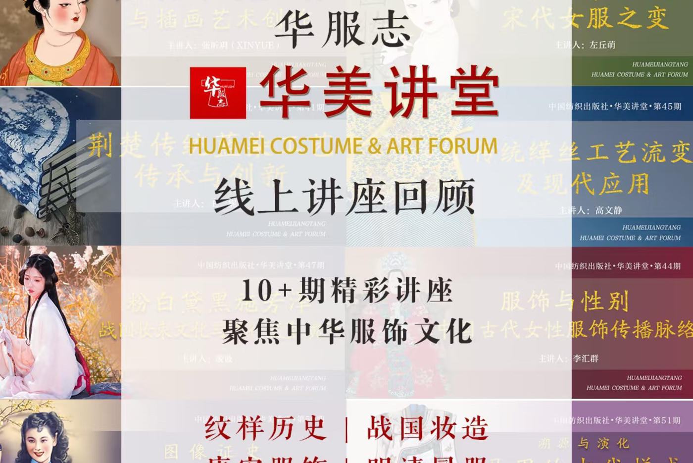 华美讲堂大 集合🎙2024年华服志举办过的精彩讲座,都在这里! ·《服饰与性别:中国古代女性服饰传播脉络》 主讲人:李汇群 时长:1小时40分 ·《粉白黛黑施芳泽——战国妆束文化与流行发型演示》 主讲人:凌波 时长:1小时30分 ·《碧玉团钗 红罗袖带:唐代服饰风尚与审美》 主讲人:贾玺增 时长:2小时 ·《唐代女子造型审美与插画艺术创作》 主讲人:张昕玥(XINYUE) 时长:2小时 ·《旧时天气旧时衣——宋代女服之变》 主讲人:左丘萌 时长:2小时 ·《明代服饰中的龙纹与象龙纹样》 主讲人:董进(撷芳主人) 时长:2小时 ·《明清时期冕服的域外影响——从岐阳世家文物谈起》 主讲人:徐文跃 时长:1小时30分 ·《溯源与演化:马甲的古代样式与民 国时尚》 主讲人:蒋琬仪 时长:1小时 ·《图像证史——旗袍的起源与演变》 主讲人:龚建培 时长:2小时 ·《AI设计未来:时尚与服装设计在人工智能时代的新思路》 主讲人:殷鹏飞 时长:1小时30分 以上讲座均有回放,跨年活动特惠中[害羞R] 华服礼春贺岁季正式开启,图书|课程|讲座联动献礼,服饰文化知识盛宴等你来~ [更多…]