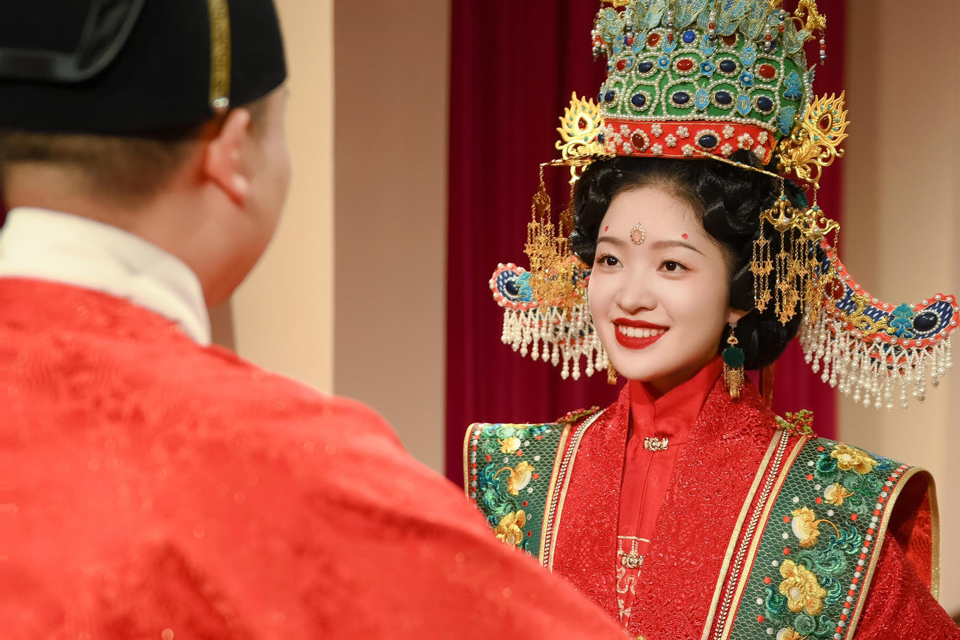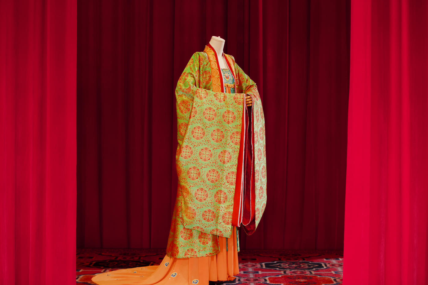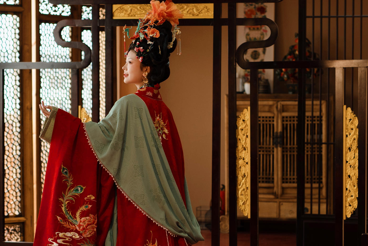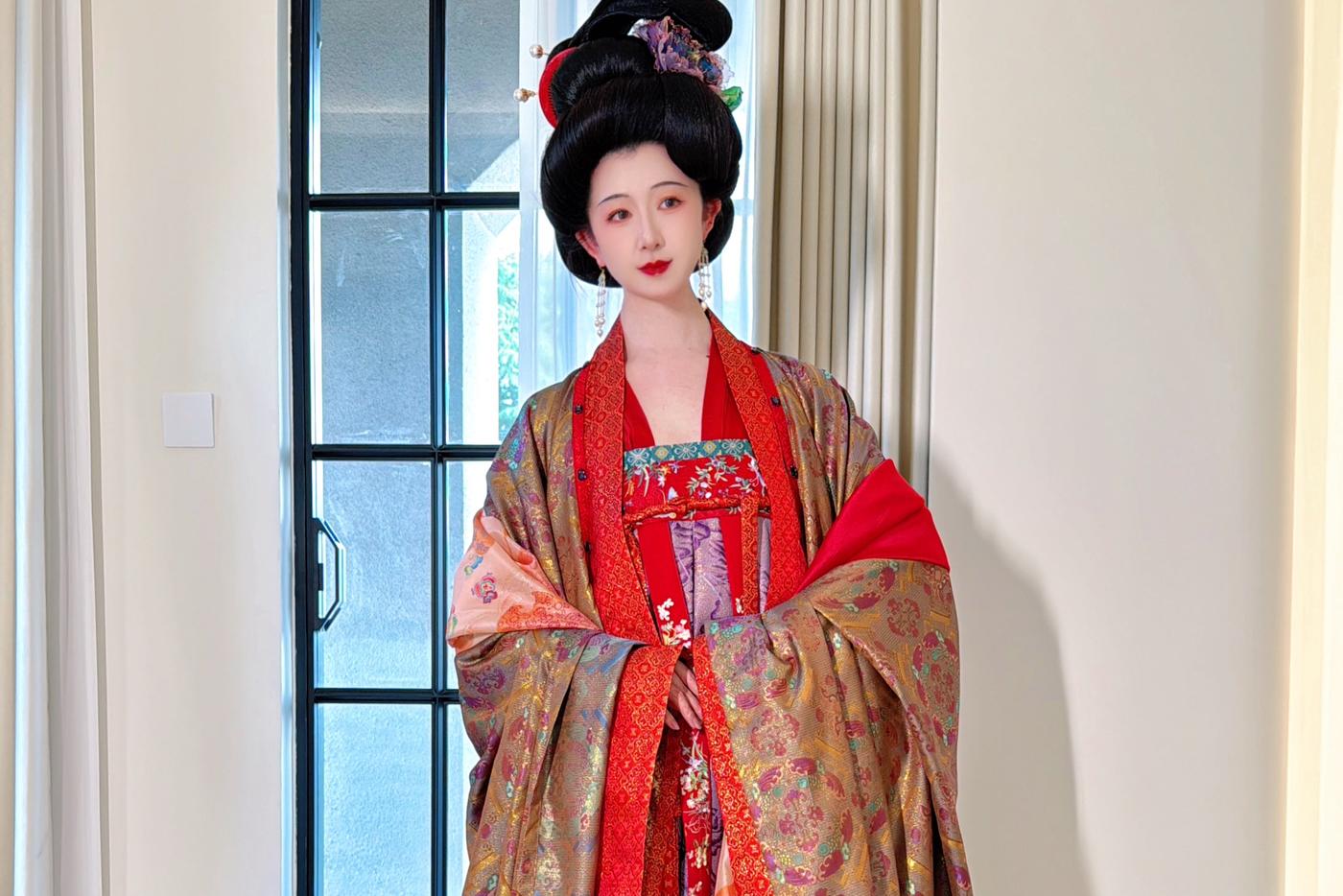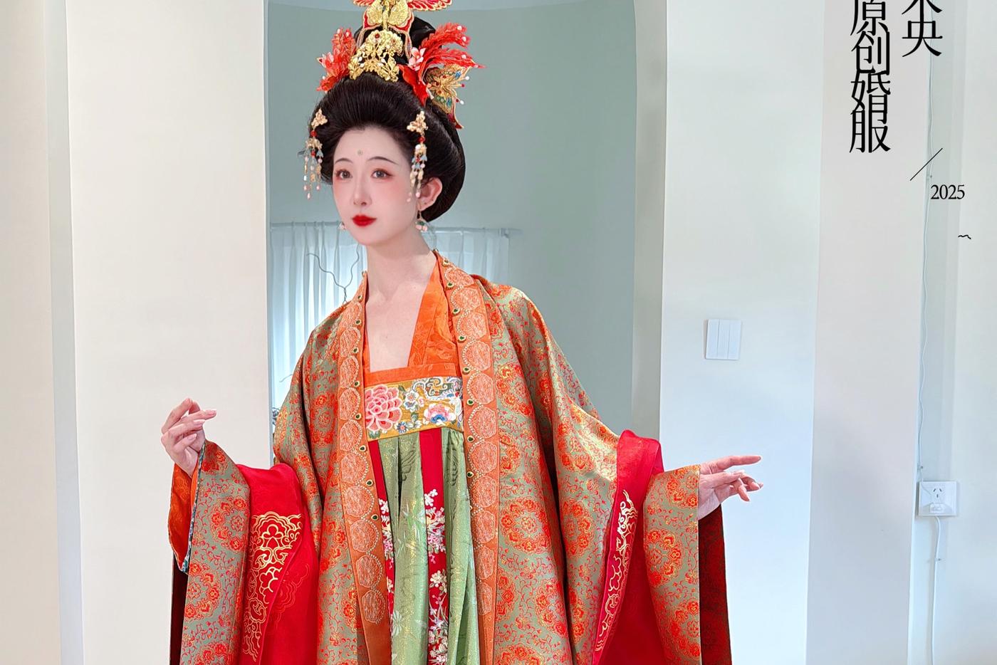华裳熠熠,古韵昭昭。此身锦绣罗衣 似从千年画卷中翩然走出 翠绿与橙红交织的绮梦 繁花暗纹仿若春日绽芳 每一处细节皆诉说着往昔的风雅与绮丽 仿佛轻轻一触 便能唤醒沉睡于时光深处的典雅记忆 长乐未央锦裳花欢迎合作订购 地址:苏州长乐未央艺术展厅 保定华中生活馆展厅 宁波理想禧宴展厅[更多…]