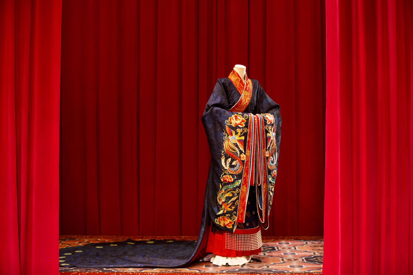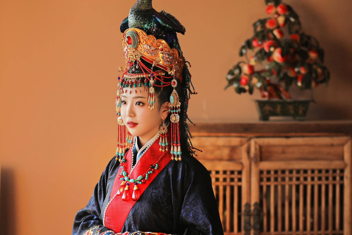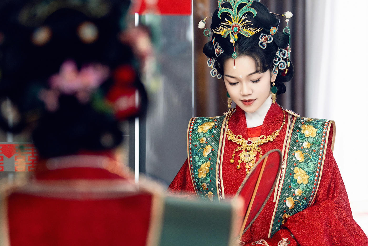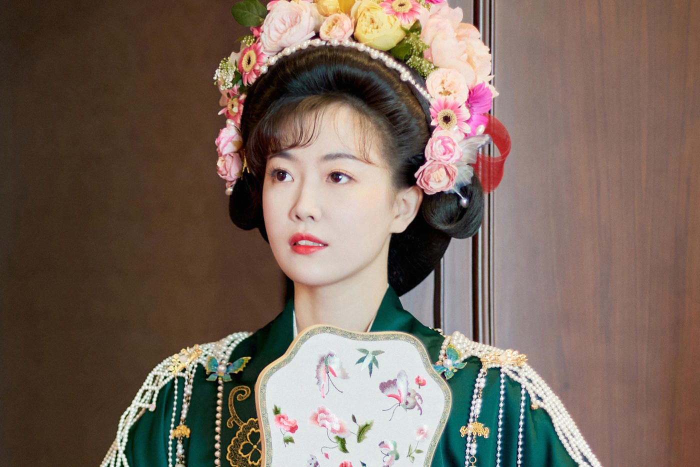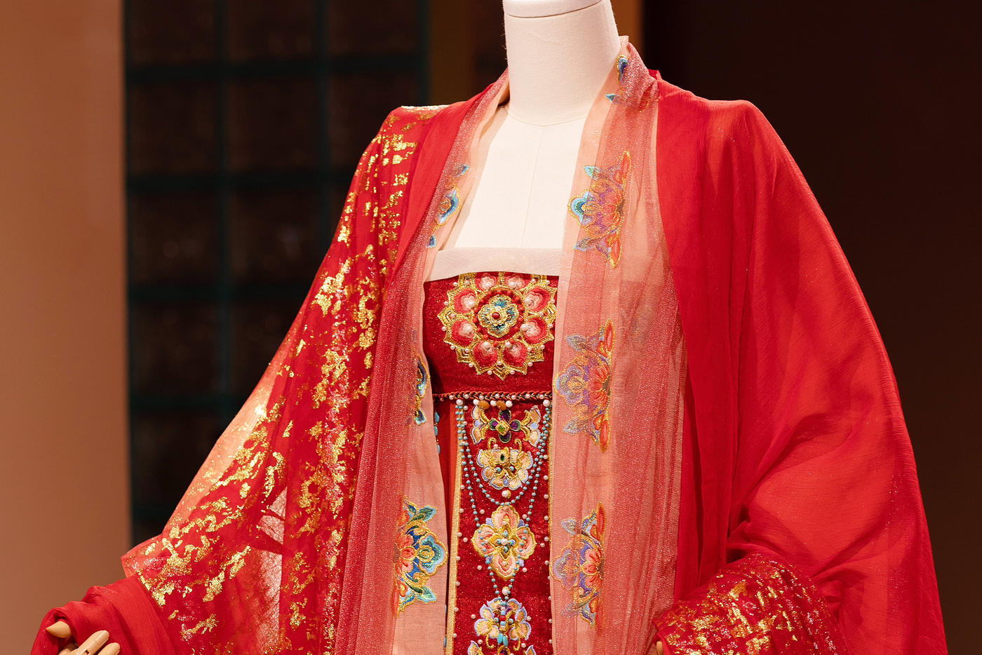 华裳熠熠,古韵昭昭。此身锦绣罗衣 似从千年画卷中翩然走出 翠绿与橙红交织的绮梦 繁花暗纹仿若春日绽芳 每一处细节皆诉说着往昔的风雅与绮丽 仿佛轻轻一触 便能唤醒沉睡于时光深处的典雅记忆 长乐未央锦裳花欢迎合作订购 地址:苏州长乐未央艺术展厅 保定华中生活馆展厅 宁波理想禧宴展厅[更多…]