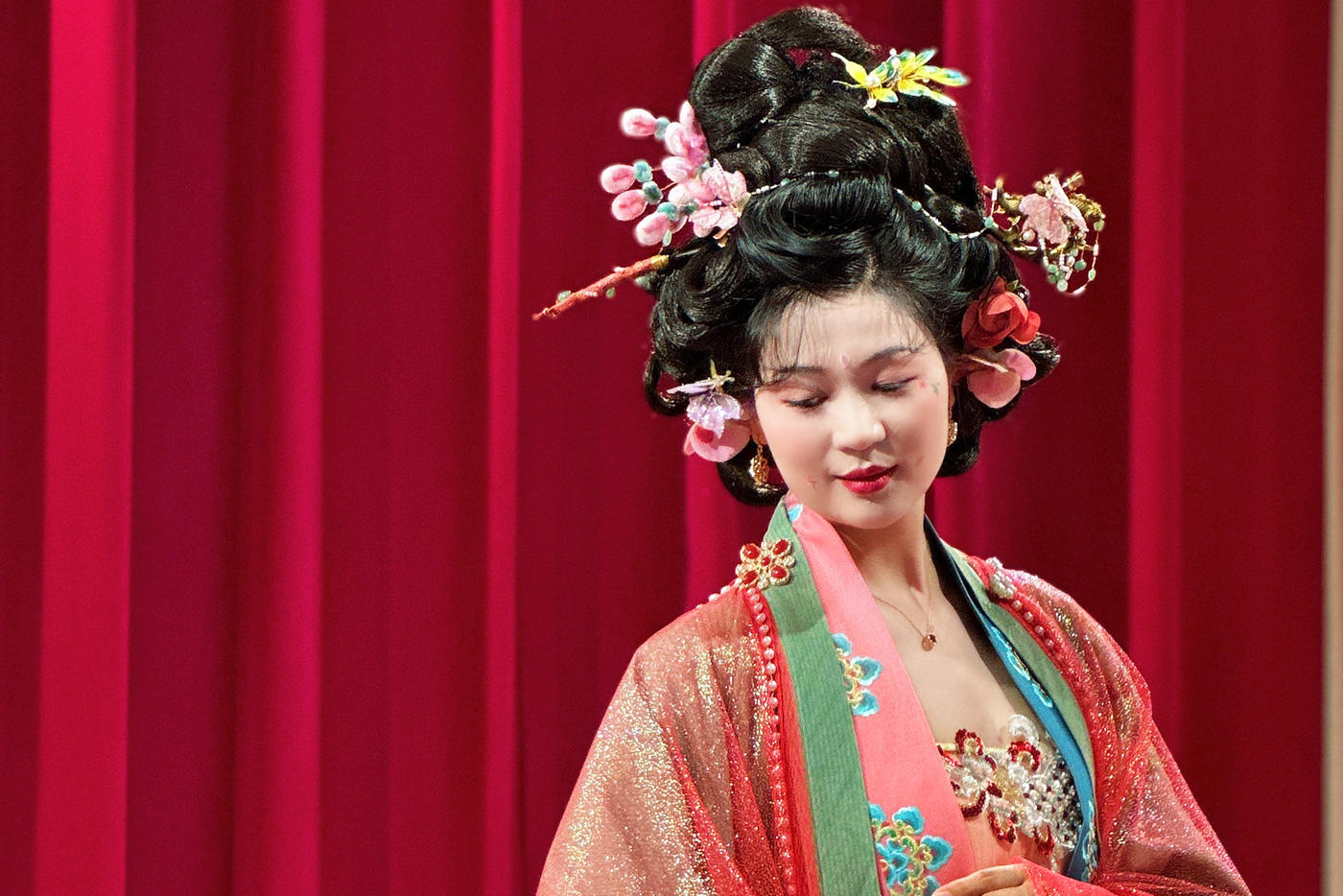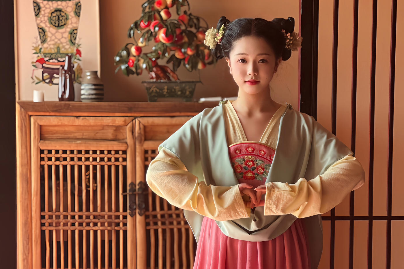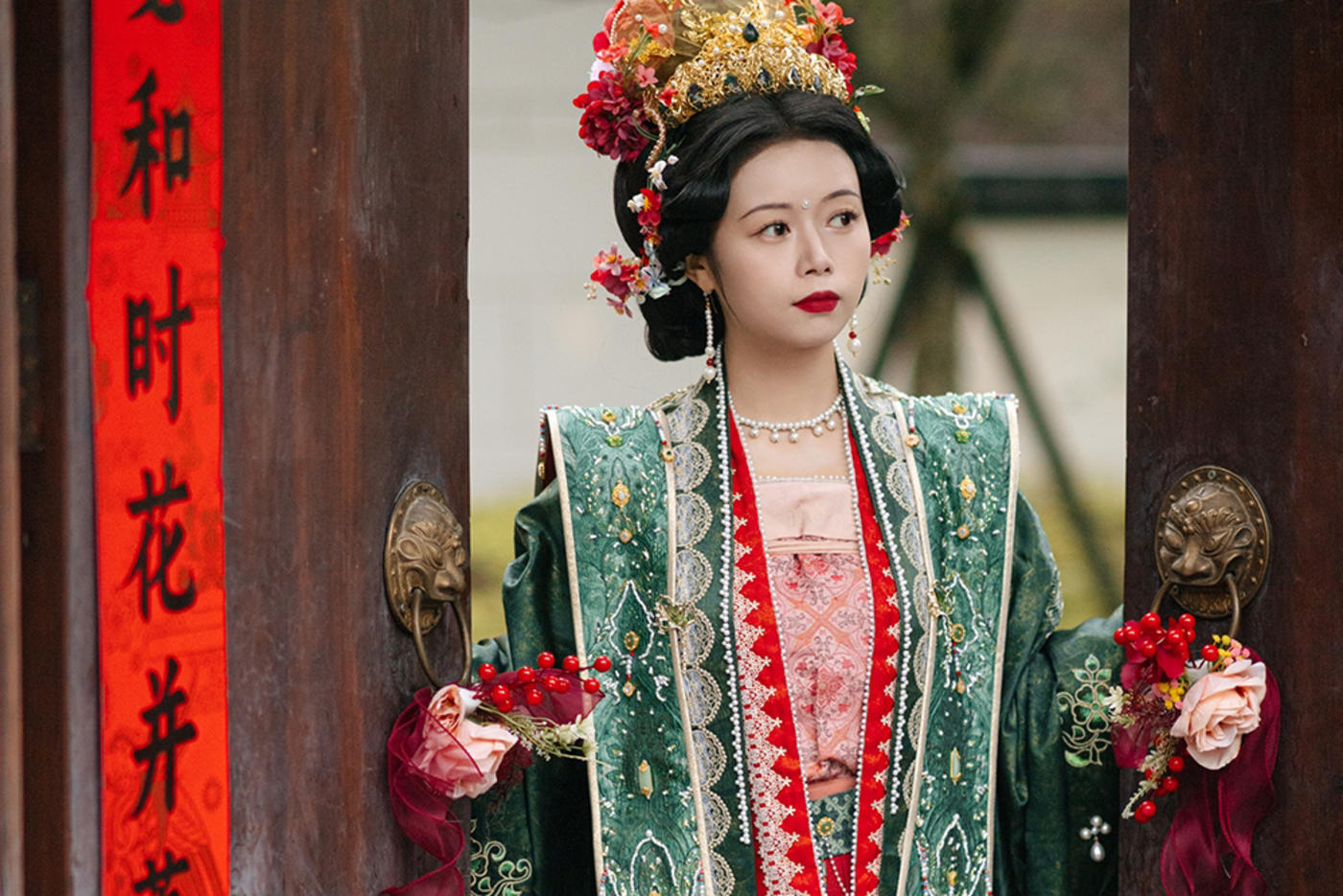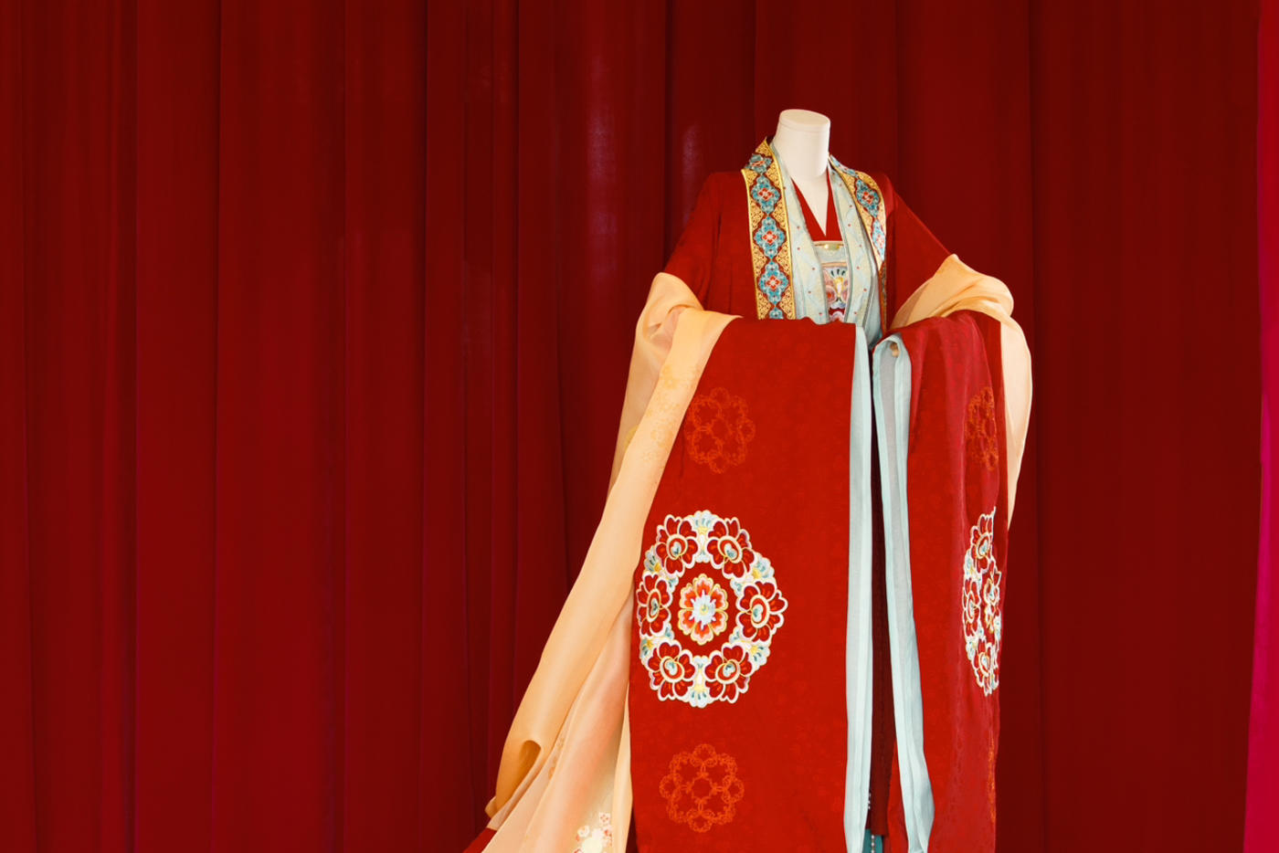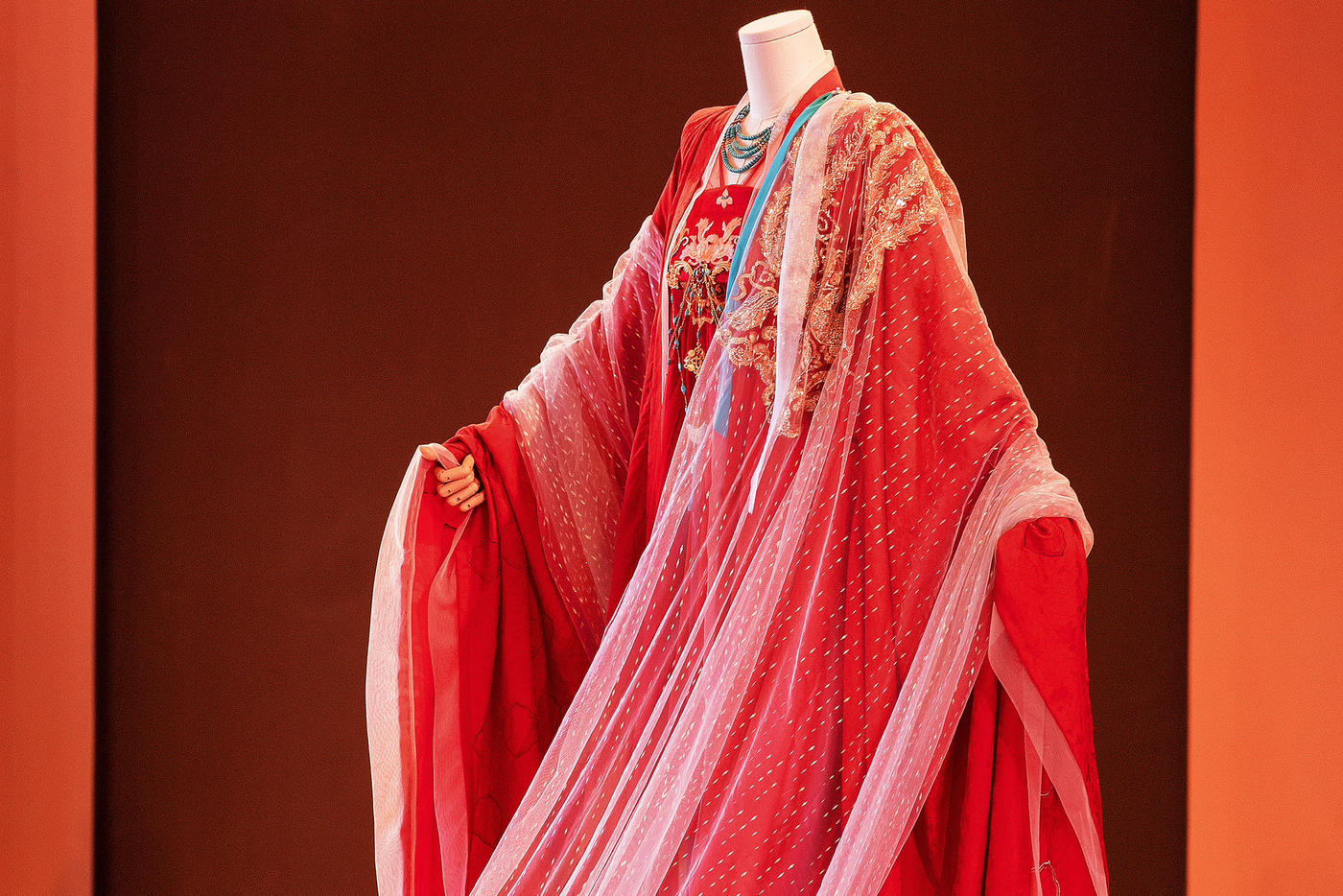 华裳熠熠,古韵昭昭。此身锦绣罗衣 似从千年画卷中翩然走出 翠绿与橙红交织的绮梦 繁花暗纹仿若春日绽芳 每一处细节皆诉说着往昔的风雅与绮丽 仿佛轻轻一触 便能唤醒沉睡于时光深处的典雅记忆 长乐未央锦裳花欢迎合作订购 地址:苏州长乐未央艺术展厅 保定华中生活馆展厅 宁波理想禧宴展厅[更多…]