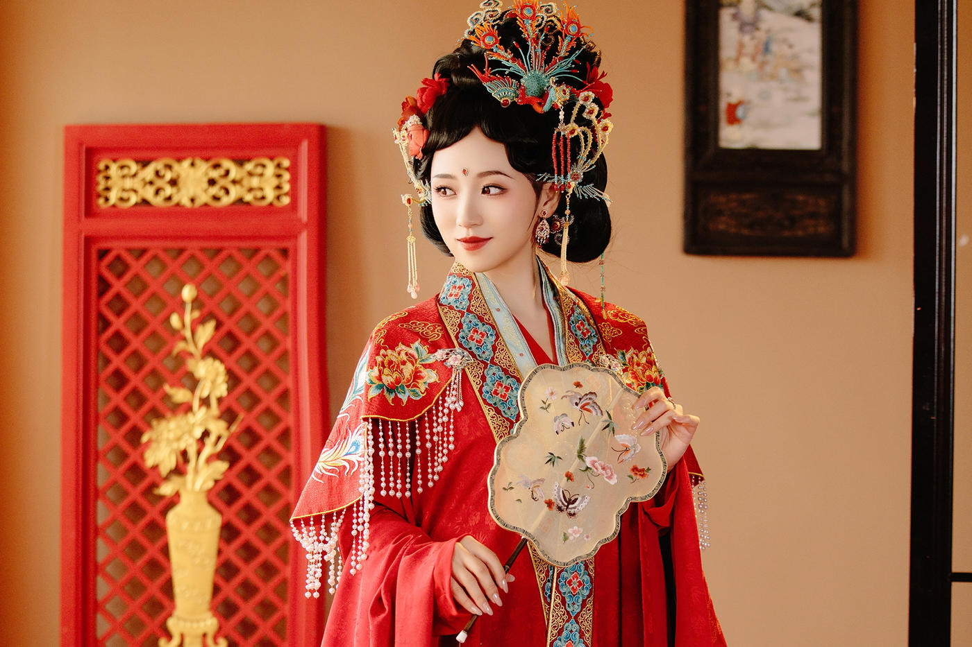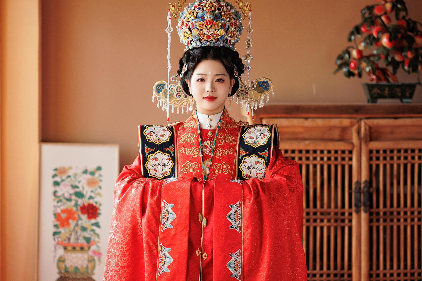 工期30-120天[更多…]在时光的回廊中,这套华美的汉服静静伫立。热烈的红似燃烧的火焰,诉说着千年的风华与庄重 。精致的花纹如绽放在历史长河中的繁花,飘逸的长纱似灵动的流云, 搖曳间仿佛穿越了岁月的洪流。它不仅是一件服饰,更是传统文化熠熠生辉的象征,承载着先辈的智慧 与审美,在现代的舞台上绽放着独属于华夏的魅力。[更多…]