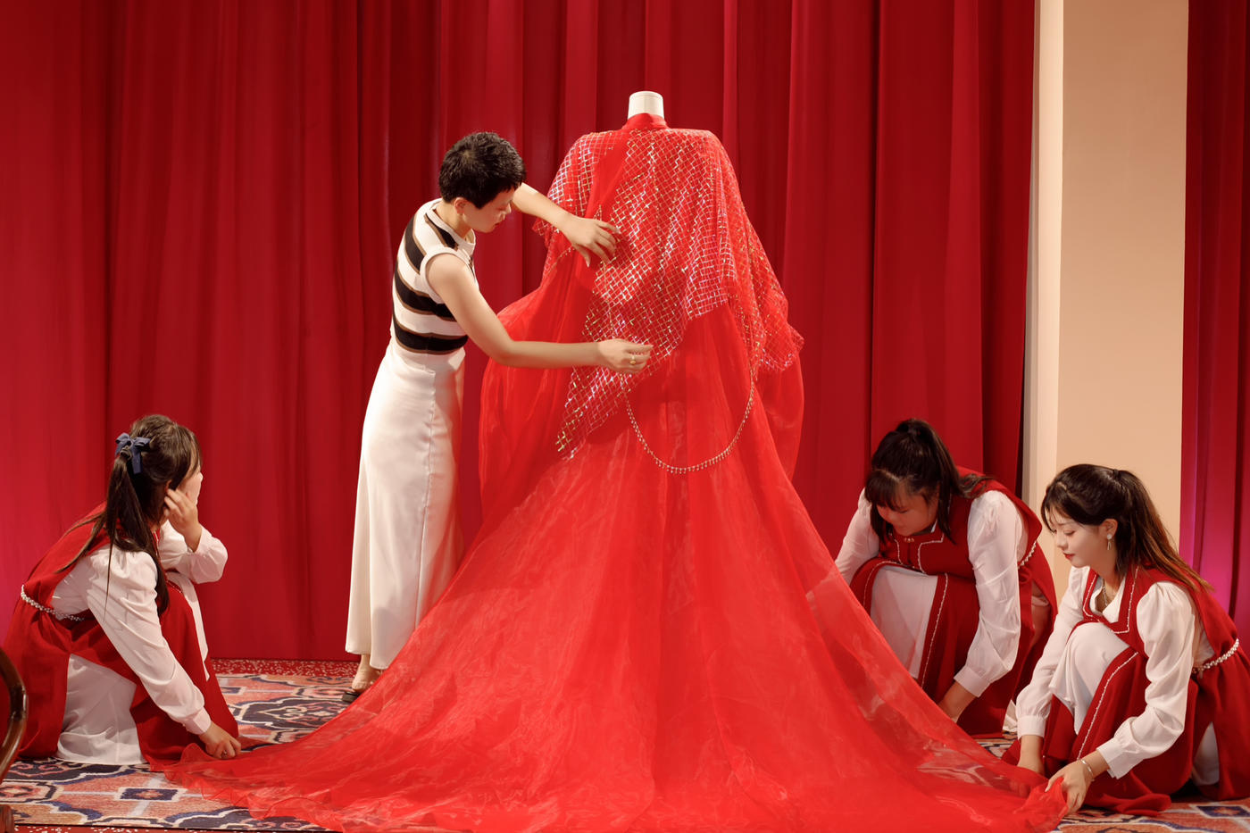 每一件婚服都凝聚了设计师无数个日夜的心血, 从文化精髓中汲取灵感,精挑细选上乘面料, 采用精湛的传统手工艺, 一针一线间皆是对古老文明的致敬与传承。[更多…]